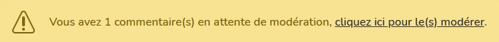 Vous trouverez également un message d'information sur votre tableau de bord (Rubrique "Accueil"), qui vous indique qu'un ou plusieurs commentaires sont en attente de modération.